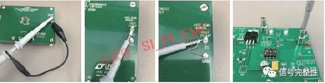 縮短探頭的地線長度對這個(gè)測試也很有幫助。探頭標(biāo)配的接地線有些時(shí)候會(huì)像天線一樣吸收開關(guān)噪聲,如果在Vin和Vout測試點(diǎn)附近有接線柱,可以去掉標(biāo)配的長地線和探頭帽,然后如圖2所示直接把探頭前端的探針和地斜靠在接線柱上。如果沒有接線柱,在PCB上找到一個(gè)較近的接地點(diǎn),然后利用無源探頭附帶的彈簧地線附件做一個(gè)較短的地線連接,或者設(shè)計(jì)時(shí)預(yù)留一個(gè)探頭接口在PCB板上,可以獲得[敏感詞]的低噪聲地線連接同時(shí)不需要用手固定探頭。