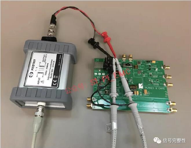 圖 3 展示了對一個(gè)開關(guān)電源評估板進(jìn)行環(huán)路響應(yīng)測試時(shí)需要配置的隔離變壓器和1:1無源探頭,隔離變壓器使用的是Picotest的N2101A注入變壓器。這個(gè)電源測試板設(shè)計(jì)時(shí)已經(jīng)在反饋回路中放置了5Ω注入電阻。