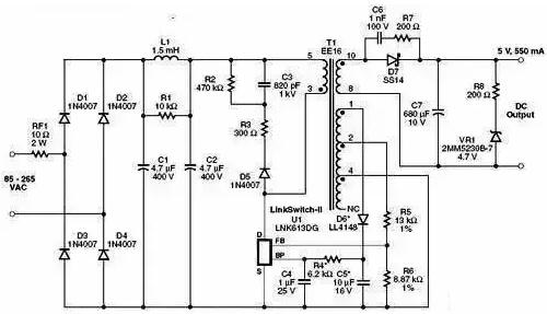 該設(shè)計采用了Power Integrations的LinkSwitch系列產(chǎn)品LNK613DG。這種設(shè)計非常適合手機或類似的USB充電器應(yīng)用,包括手機電池充電器、USB 充電器或任何有恒壓/恒流特性要求的應(yīng)用。