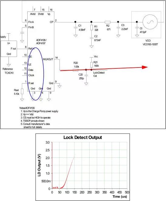 參考信號REFIN信號丟失。當REFIN信號與PLL頻合器斷開連接時,PLL顯然會失鎖;然而,ADF41xx 系列的 PLL,其數(shù)字鎖定指示用 REFIN 時鐘來檢查是否鎖定,如果 PLL 先前已經(jīng)鎖定,REFIN 時鐘突然丟失,PLL 會繼續(xù)顯示鎖定狀態(tài)。解決方法是使用模擬鎖定指示。