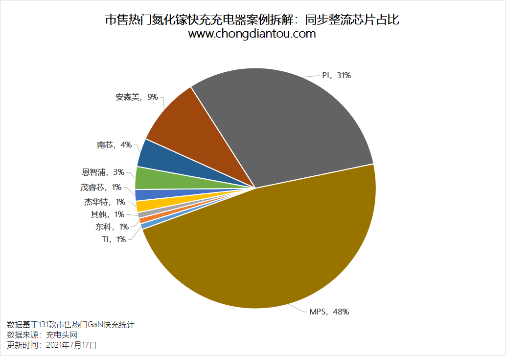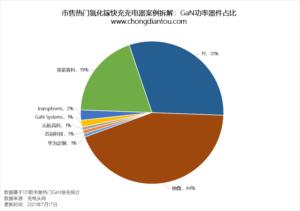 同時,老牌電源廠商PI憑借高度集成的合封氮化鎵電源芯片的優(yōu)勢,也拿下了30%的占比,成為氮化鎵主控芯片領(lǐng)域的第二大巨頭。