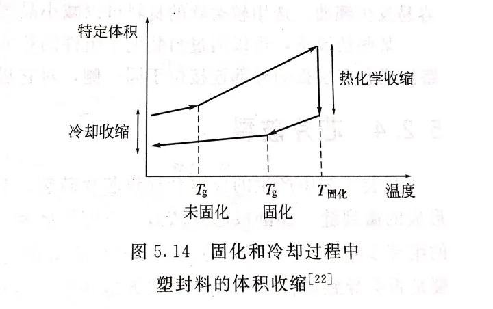 導致翹曲的原因主要包括CTE失配和固化/壓縮收縮。后者一開始并沒有受到太多的關(guān)注,深入研究發(fā)現(xiàn),模塑料的化學收縮在IC器件的翹曲中也扮演著重要角色,尤其是在芯片上下兩側(cè)厚度不同的封裝器件上。在固化和后固化的過程中,塑封料在高固化溫度下將發(fā)生化學收縮,被稱為“熱化學收縮”。通過提高玻璃化轉(zhuǎn)變溫度和降低Tg附近的熱膨脹系數(shù)變化,可以減小固化過程中發(fā)生的化學收縮。