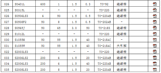 ??可控硅,是可控硅整流元件的簡稱,是一種具有三個PN結(jié)的四層結(jié)構(gòu)的大功率半導體器件,亦稱為晶閘管。具有體積小、結(jié)構(gòu)相對簡單、功能強等特點,是比較常用的半導體器件之一。該器件被廣泛應用于各種電子設(shè)備和電子產(chǎn)品中,多用來作可控整流、逆變、變頻、調(diào)壓、無觸點開關(guān)等。家用電器中的調(diào)光燈、調(diào)速風扇、空調(diào)機、電視機、電冰箱、洗衣機、照相機、組合音響、聲光電路、定時控制器、玩具裝置、無線電遙控、攝像機及工業(yè)控制等都大量使用了可控硅器件。雙向晶閘管的電極引線不規(guī)則,通常G極是在T1極側(cè)引出而不是T2極側(cè)。雙向晶閘管的兩個主電極T1和T2還是有區(qū)別的,雙向晶閘管的觸發(fā)通常是相對與T1與G之間的電流。