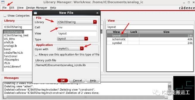 以上是部分軟件默認(rèn)狀態(tài)的快捷鍵,熟悉之后用戶可以根據(jù)自己的操作習(xí)慣更改快捷鍵。快捷鍵的功能可能存在一定的翻譯偏差,希望各位同學(xué)在實(shí)際操作中慢慢體會(huì),熟練使用快捷鍵可以大大提高版圖效率。 反相器版圖設(shè)計(jì)新建反相器的版圖View, 在Library Manager界面:File->New->Cell View, 選出自己的工程庫(kù),Cell選擇:inv, Type選擇layout, 打開工具選擇默認(rèn)即可,確定之后會(huì)彈出版圖設(shè)計(jì)窗口。
