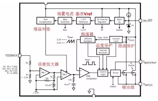 作為電源研發(fā)工程師,當然經(jīng)常接觸各種芯片。 有些工程師可能對芯片的內(nèi)部不太熟悉。 許多學生在應用新芯片時直接進入數(shù)據(jù)集的應用頁面,并根據(jù)推薦的設計構建外設。 就是這樣。 這樣,即使應用沒問題,也忽略了技術細節(jié),也沒有為自己的技術成長積累更好的體驗。 今天以DC/DC降壓電源芯片LM2675為例,詳細說明以下芯片的內(nèi)部設計原理和結構。