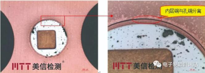 電子元器件、PCB結構缺陷觀察。利用切片方法可對體積較小的樣品放大觀察,以檢測電子元器件關鍵位置中的孔洞、針孔、吹孔、裂紋等缺陷;檢測PCB的分層,孔銅斷裂等缺陷。