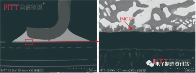NG樣品出現(xiàn)失效焊點開裂的直接原因是焊料與鎳層之間未能形成良好的IMC層,從而使得焊點界面在受應力作用下容易發(fā)生開裂。