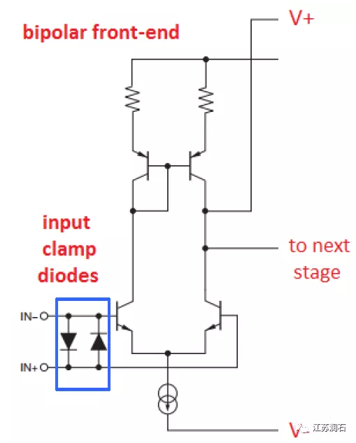 圖2 運(yùn)放內(nèi)部輸入保護(hù)電路