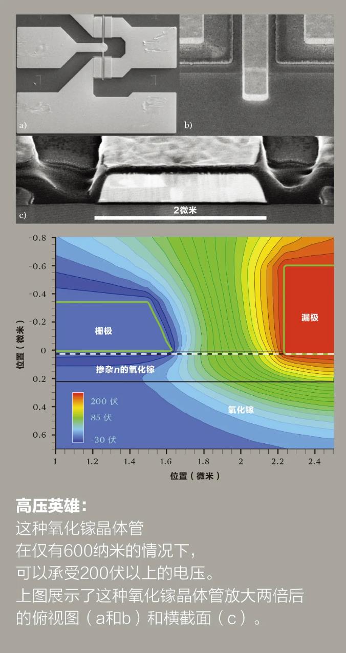 日本國家信息與通信技術(shù)研究所(NICT,位于東京)的東脅正高(Masataka Higashiwaki)是[敏感詞]個(gè)發(fā)現(xiàn)β-氧化鎵在電源開關(guān)中的潛力的人。2012年,他的團(tuán)隊(duì)報(bào)告了[敏感詞]單晶β-氧化鎵晶體管,震驚了整個(gè)半導(dǎo)體器件界。這是一種名為“金屬半導(dǎo)體場效應(yīng)晶體管”的器件。它有多好呢?擊穿電壓是功率晶體管的關(guān)鍵指標(biāo)之一,達(dá)到這個(gè)臨界點(diǎn),半導(dǎo)體阻止電流流動(dòng)的能力就會(huì)崩潰。東脅研究的開創(chuàng)性晶體管的擊穿電壓大于250伏。相比之下,氮化鎵花了近20年的時(shí)間才達(dá)到這一水平。