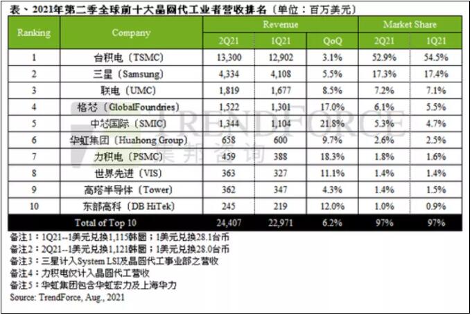 展望第三季,各晶圓代工廠產(chǎn)能利用率普遍維持滿載水位,且持續(xù)供不應(yīng)求,加上車用芯片大幅增加投片量,擴大產(chǎn)能排擠力道,導(dǎo)致晶圓代工平均售價續(xù)揚,TrendForce 認(rèn)為,第三季前十大晶圓代工產(chǎn)值將再創(chuàng)紀(jì)錄,且季增幅將更勝第二季。