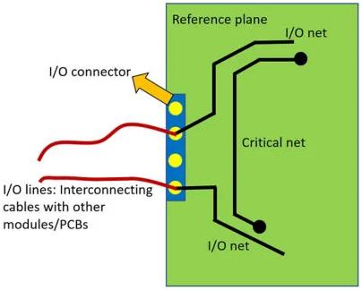 通過 I/O 線進入電路板的任何噪聲都有可能耦合到承載重要數(shù)據(jù)/時鐘信號的關鍵網(wǎng)絡,這基本上是 PCB 的抗擾性問題(圖 3a)。以類似的方式,關鍵網(wǎng)絡攜帶的任何高速信號都可以耦合到 I/O 網(wǎng)絡,最終通過離開電路板的 I/O 線傳到外部世界并進入系統(tǒng)中的其它模塊。原則上,這將是PCB的輻射問題(圖 3b)。