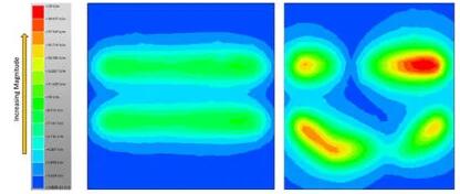 圖 7a(左)和 b:具有對稱和非對稱差分對網(wǎng)絡的近場 @ 597.45 MHz