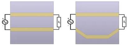 圖 6a(左)和 b:在 PCB 上布線的差分對示例