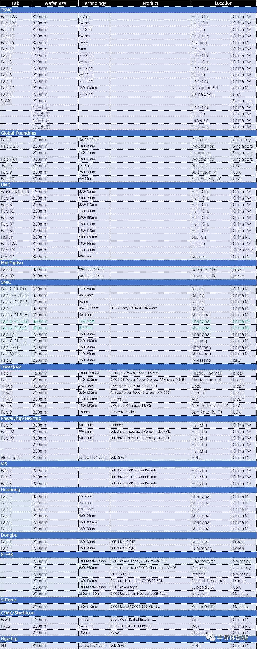 我上個月發(fā)布了球主要晶圓廠分布統(tǒng)計數(shù)據(jù)的[敏感詞]版,得到不少行業(yè)內(nèi)同仁的指點和建議。所以這次我根據(jù)大家的反饋,對數(shù)據(jù)進行了修改和整理。