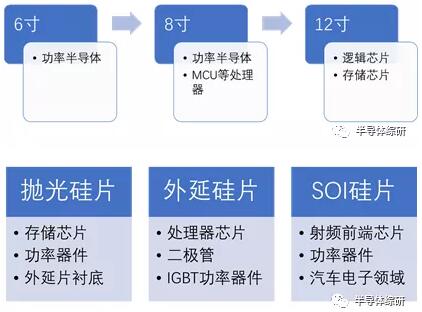 SUMCO公司的產(chǎn)品從使用領(lǐng)域的角度來(lái)看范圍分布廣泛,相關(guān)領(lǐng)域目前對(duì)12寸晶圓需求最強(qiáng)的是存儲(chǔ)芯片(NAND和DRAM),8寸晶圓更多的是用于汽車電子等領(lǐng)域。根據(jù)制造工藝分類,半導(dǎo)體硅片主要可以分為拋光片、外延片與以 SOI 硅片為代表的高端硅基材料,除以上三種主流硅片外,半導(dǎo)體硅片還包括退火片、擴(kuò)散片、結(jié)隔離片等不同種類。拋光片是應(yīng)用最為廣泛的工藝,因?yàn)槠渌墓に嚩际窃趻伖馄幕A(chǔ)上進(jìn)行二次開(kāi)發(fā)的,拋光片可以用于制作存儲(chǔ)芯片、功率器件以及外延片的襯底材料。外延片是在拋光片的基礎(chǔ)上生長(zhǎng)了一層單晶硅,一般用于通用處理器芯片、二極管以及IGBT功率器件的制造。SOI主要用于射頻前端芯片、功率器件和汽車電子等領(lǐng)域。
