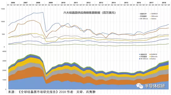 參考全球排名前六的硅晶圓供應(yīng)商的歷年公司年報(bào)以及相關(guān)方面研究報(bào)告,整理并分析了這六家公司從2006 年至今的財(cái)務(wù)數(shù)據(jù),通過(guò)對(duì)比它們的歷年銷售額數(shù)據(jù)可以看出,6家硅晶圓公司歷年硅晶圓銷售額漲跌態(tài)勢(shì)基本一致,信越化學(xué)和SUMCO的銷售額數(shù)據(jù)明顯處于優(yōu)勢(shì)地位,但是SUMCO的銷售額與全球排名[敏感詞]的信越化學(xué)相比還是存在一定的劣勢(shì)。