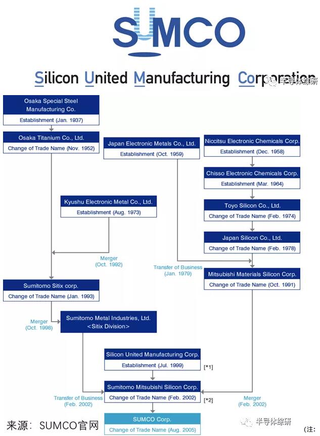 SUMCO公司本身歷史并不長(zhǎng),但其硅晶圓的制造技術(shù)和歷史可以追溯到住友金屬工業(yè)和三菱材料。公司成立的使命就是專注于300mm硅晶圓的開(kāi)發(fā)和生產(chǎn)。SUMCO公司的硅晶圓業(yè)務(wù)就是由住友和三菱這兩家公司的硅事業(yè)部發(fā)展起來(lái)的,下面從住友金屬工業(yè)和三菱材料的收購(gòu)及合并歷史,到SUMCO公司的收購(gòu)及合并歷史進(jìn)行總結(jié),以此對(duì)SUMCO的歷史沿革過(guò)程進(jìn)行介紹。