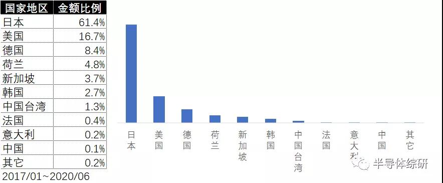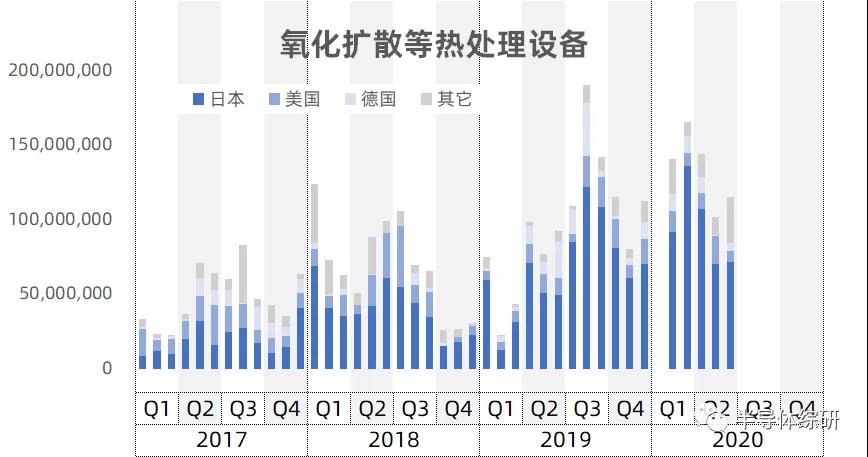 從下面比例圖上可見,中國大陸進(jìn)口的氧化擴(kuò)散等熱處理設(shè)備,有超過6成來自日本
