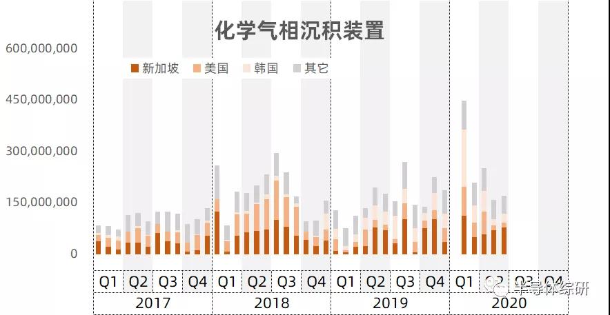 而從進(jìn)口國家地區(qū)分布上看,CVD設(shè)備的最主要來源居然是新加坡。這可能是美日供應(yīng)商在新加坡的分公司生產(chǎn)或組裝后直接出口到大陸的。后續(xù)有機(jī)會(huì)我會(huì)再調(diào)查一下細(xì)節(jié),也歡迎讀者提供線索