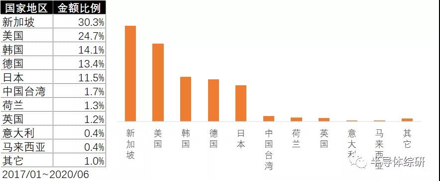 從進(jìn)口來源地區(qū)看,美國、新加坡及德國排在前三位
