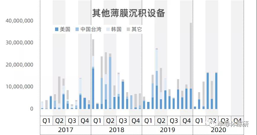 其它成膜設(shè)備的進(jìn)口量很少,同期只有4.8億美金,且金額數(shù)值起伏變化劇烈,參考價(jià)值不大