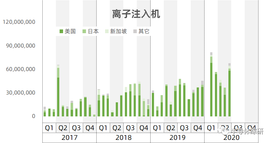 離子注入設(shè)備的進(jìn)口量相對(duì)其它主要設(shè)備偏少,同期只有12.7億美金,但是作為半導(dǎo)體和IC制造不可或缺的重要設(shè)備,其進(jìn)口來源單一,主要被美國一家壟斷。這對(duì)于我國半導(dǎo)體產(chǎn)業(yè)的供應(yīng)鏈安全而言是一個(gè)比較大的隱患