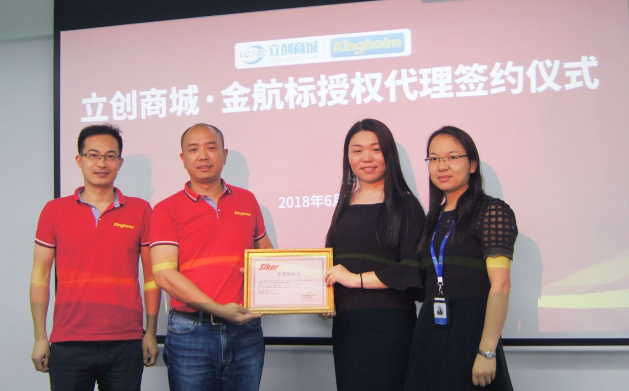 金航標總經(jīng)理宋仕強和立創(chuàng)商城副總張銀穎等出席金航標